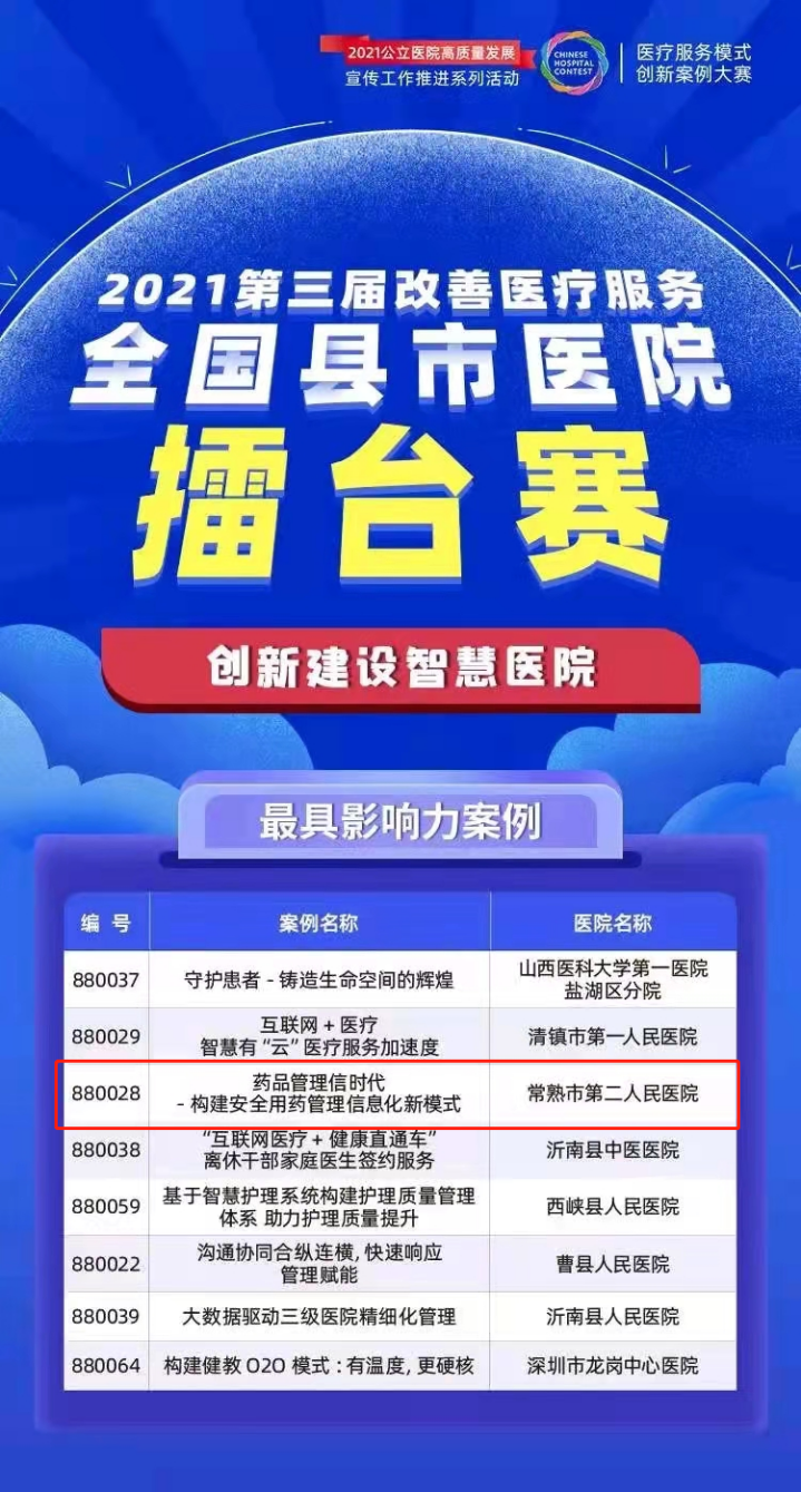喜讯!常熟二院药学部荣获全国县市医院擂台赛“最具影响力案例”奖