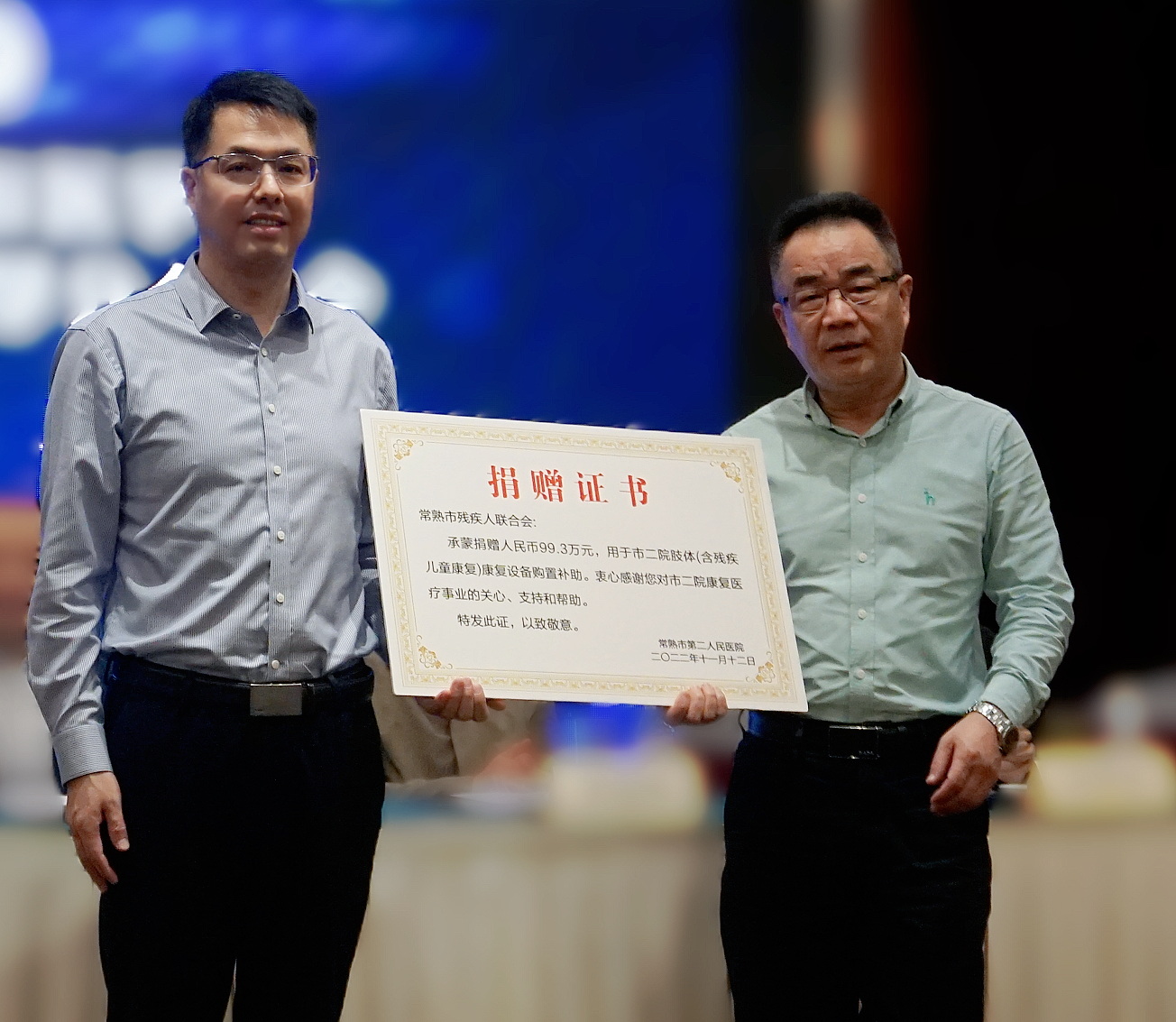 常熟市残疾人联合会长期以来一直关心和支持常熟市的康复事业,特别是残疾儿童康复方面,我院作为苏州市和常熟市残疾儿童定点康复机构,每年认真做好全市肢体残疾儿童的康复工作,希望每一个孩子都能实现梦想。今年市残联又慷慨捐赠了99.3万元支持儿童康复工作。