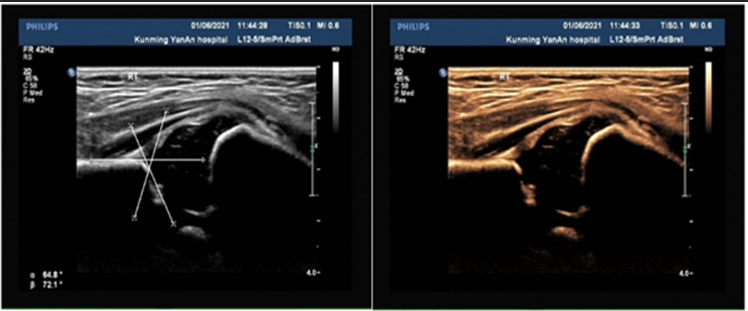 3.可进行可视化介入治疗,如积液抽吸,关节腔、肌腱/腱鞘、关节周边或肌肉药物治疗,软组织活检等,以及进行治疗后疗效的评估。